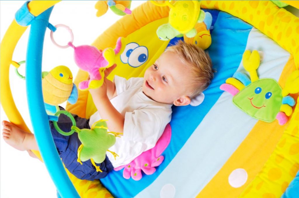 Los tapetes y gimnasios de piso con varios aditamentos que despierten su curiosidad son excelentes para su desarrollo motriz y cerebral. Las diferentes formas, texturas y colores lo mantendrán entretenido por horas.